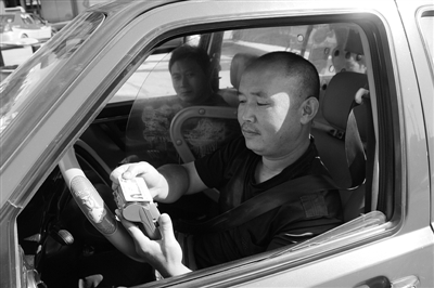 金文婷/摄今天上午10点记者刷卡付车费。司机说,这是他今天的第一笔刷卡交易。