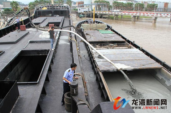 龙湾新闻网讯 10月15日,中国海监龙湾区大队执法人员对辖区的倾废中转站、倾废管道、倾废船开展了一次突击式的专项执法检查。此次专项共排查蒲州、白楼下、无极门等4处中转站、登检3条倾废船,若干倾废管道,未发现违规、违法行为。
