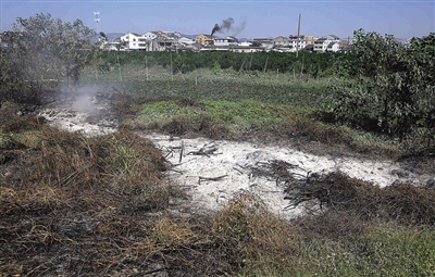 昨天,发帖网友“wz啊仁哥”带路,记者与市民监督团一起走访现场,虽然没有看到帖子中的垃圾山,但是焚烧垃圾留下的黑灰随处可见。
