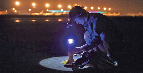 “把老跑道上的灯拆下来,换上新灯。”机场保障部相关负责人说,按照规定,跑道灯光须发黄,而平滑边灯的颜色则发蓝。记者发现,一盏平滑边灯高20多厘米,工人们每隔60米安装一盏,平均一盏灯的安装时间为10多分钟。