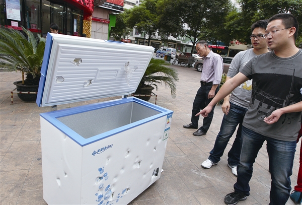 业内人士称,根据相关法律法规,消费者遇到有质量问题的商品,可以与商家或生产者销售企业协商解决,如果商家不配合,可向工商行政管理部门或者质监部门申诉以寻求解决,而不必采取当街砸冰柜这种有些过激的行为。如果因这台冰柜故障导致消费者存放的货物发生损失,消费者可以提供相关的货物证明向厂家或经销商索赔。