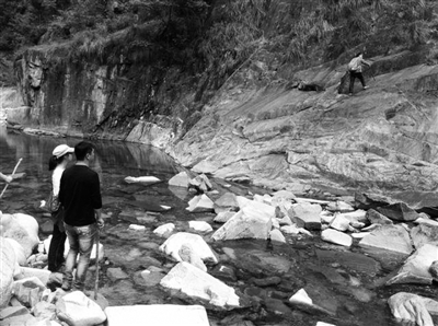 在莒溪峡谷景区入口处香炉潭发现疑似小温小腿骨。