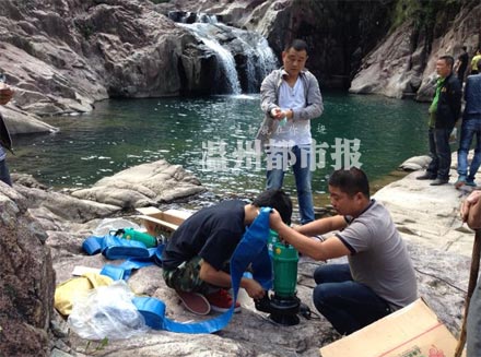 11:30消息:工作人员正在安装潜水水泵,六台大流量抽水机准备投入使用,电线从1.1公里之外接入。水潭附近拉起了警戒线,很多村民在现场围观。