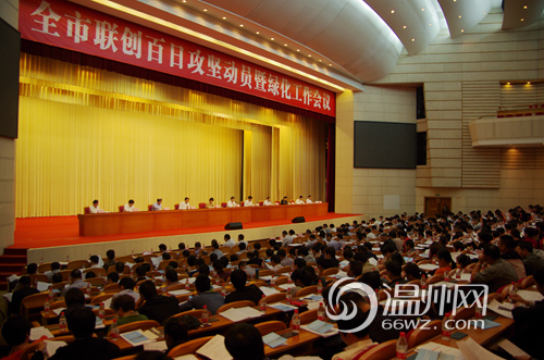 10月18日讯(记者王建平) 今天上午,温州市委市政府在大会堂举行全市联创百日攻坚动员暨绿化工作会议,此次会议主要是认真贯彻落实市委十一届四次全会精神,研究部署“六城联创”百日攻坚和今冬明春的绿化工作,努力改善城乡环境,为温州赶超发展提供优良的环境支撑。