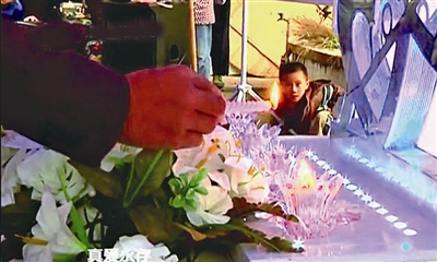 随着婚礼进行曲的响起,新郎何滨手捧着新娘罗兰的遗像缓缓地走上了舞台。在罗兰的遗像上,如同每一位新娘一样,盖着一块白色蕾丝头纱。何滨将罗兰的遗像放置在台中央的桌上,献上了深情一吻。本该是一场喜庆的婚礼,但何滨却在舞台中央,望着已逝妻子的照片,泪如雨下。