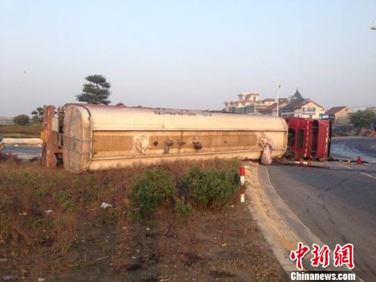 杭州一槽罐车为避车致侧翻 近30吨纯苯泄漏(图)