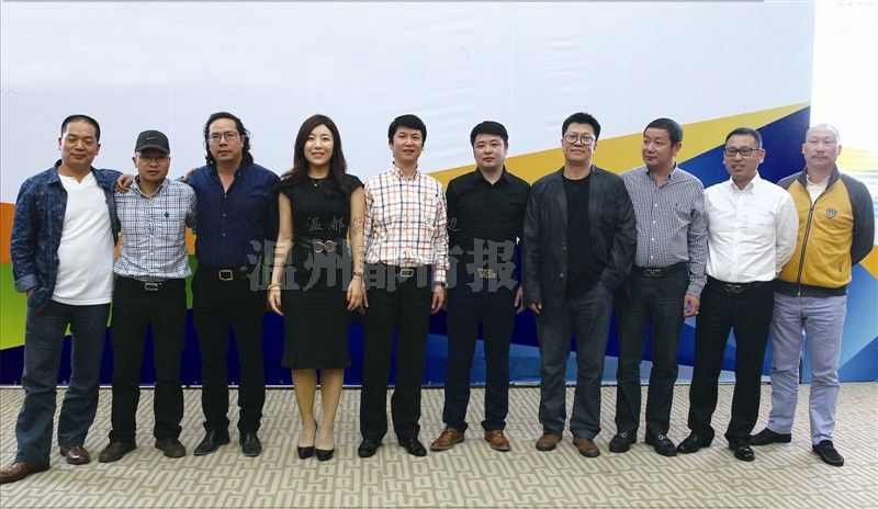 昨天,文化产业发展论坛(瓯海)暨2013年度优秀文化温商颁奖典礼在瓯海区新行政中心举行,图为十大优秀文化温商合影。温都记者王诚/摄