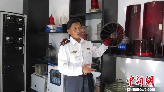 王炳交向记者介绍灯塔的工作原理。刘家宇摄