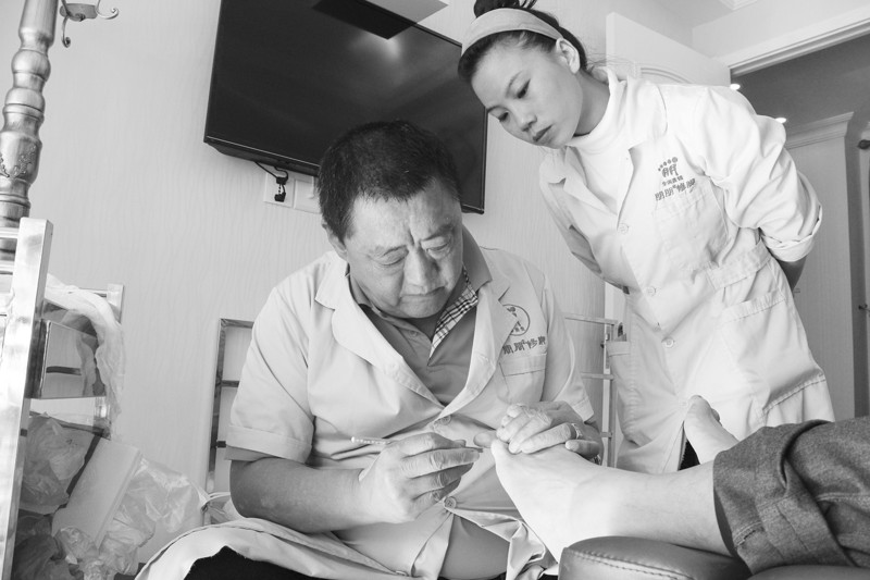在谈到戚师傅时,这位腼腆的姑娘脸上露出了笑容。“戚师傅对我很好,平时很和蔼,我刚开始的时候很紧张,师傅不但仔细给我讲解练习步骤,甚至让我拿他的脚练刀功。他平时也很有爱心,热心帮助很多老人免费修脚,待人接物一点架子都没有。 ”胡杨说。