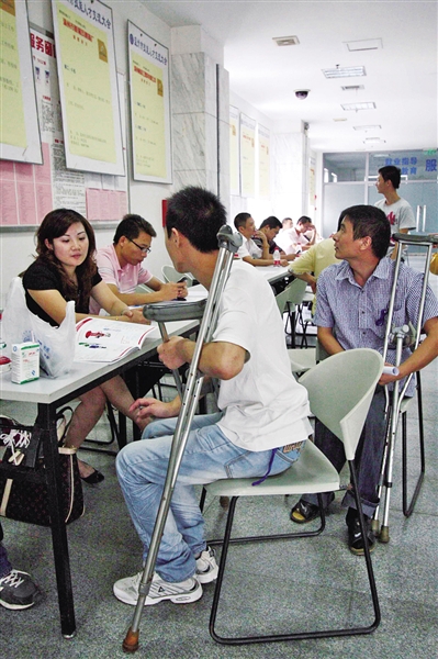 每一届的残疾人招聘会虽然办得艰难,但却实实在在给众多残疾人带来了机遇。2010年的招聘会吸引了众多残疾人前来应聘。资料图片