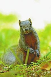 红腹松鼠,国家三级保护动物,是一种中等大小的树栖松鼠,主要是栖居在密林中,多喜清晨、黄昏活动。外形与岩松鼠相近,耳端无簇毛,体色鲜艳,尾大。面容清秀,眼睛闪闪有光,身体矫健,四肢轻快,非常敏捷,非常机警。中国约有15个亚种,其体型、颜色有较大差异。 (华西都市报记者丁伟)