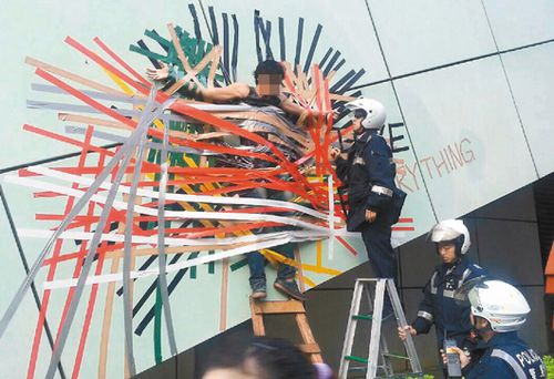 台湾男子将自己黏在墙壁向女友示爱 被警方带走