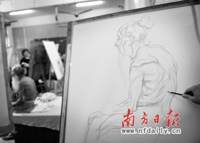 李继胜在华南师范大学做人体模特。