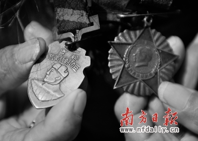 抗美援朝时获奖的勋章随身挂在衣服上。