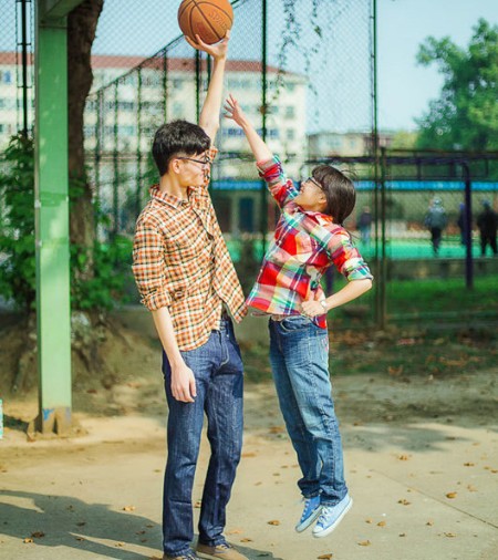 身高相差44CM 江苏大学情侣刷新最萌身高差记录