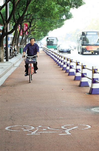 同时,记者也就近日骑行橙色“环游圈”时发现的问题咨询了相关部门。据负责“环游圈”自行车道设计的市城市交通研究所设计人员介绍,橙色自行车道于今年3月开始建设,当初设计时考虑到市区停车位较少,老城区自行车道设计不完整等现实因素,他们设计这条线路时主要是在原来道路的基础上做调整,目的在于最大程度实现机非分离。设计人员称,截至今年9月底,全市机动车保有量约为167.93万辆,其中仅市区就有汽车43.77万辆,汽车依然是市民出行最主要的交通工具,相比之下,市民骑自行车出行的频率还是相对较低,所以像百里路、江滨西路等路段依然在自行车道右侧保留了汽车停车位。该设计人员也表示,城市交通路线设计并不是一成不变的,“环游圈”设计的初衷正是在培育市民骑自行车出行的习惯,将来骑车的人多了,市区的停车场投入多了,自行车道设计自然会更趋于合理,机非分离是必然趋势。