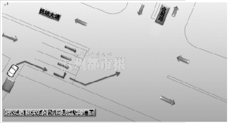 为减少道路冲突点,提高车辆通行效率,今年9月中旬,市交警支队三大队对机场大道会展路口西口的机动车道进行了重新改造,将该路口最左边的左转弯车道移到了道路最右侧。为了帮助驾驶员尽快适应重新调整后的车道,改变原有的行车习惯,交警部门在机场大道蒲江路口至会展路口段的南侧灯柱上专门安装了14块印有“左转车辆请走右道”的提示牌,提醒行经驾驶员注意观察,认准导向车道。同时交警部门也从9月中旬起暂停了对该路口闯红灯的抓拍。