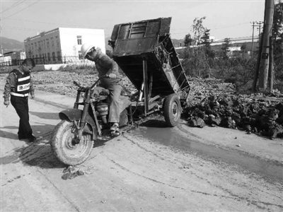 10月29日下午,记者随高速路政人员赶到现场时,却看到了让人意外的一幕:“老”垃圾还没有运走,桥下又有人堆放了30多米长的建筑垃圾。一辆农用车从垃圾中转站正拖着满车的建筑垃圾在高架桥下倾倒。