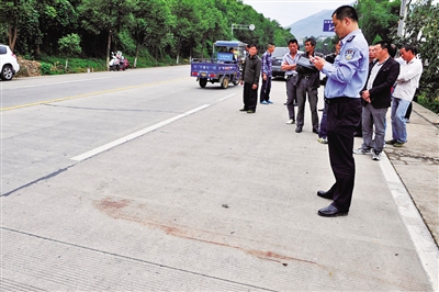 事故现场残留的血迹,无声诉说着当时不幸的一幕。杨冰杰摄