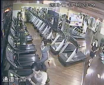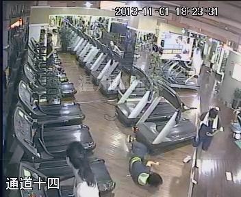 在会所工作人员的协助下,记者调取了事发当时的监控视频。视频显示,11月1日晚6时23分许,陈女士出现在画面中,紧接着,她在两台跑步机之间犹豫了一下,然后选择了其中一台并踏了上去。陈女士选择的那台跑步机当时正在运转,陈女士没能站稳,一下子被甩了出去,重重地摔在了跑步机后侧的地板上(见上图)。