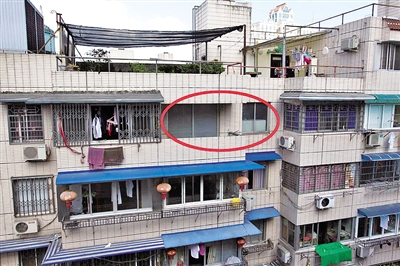 地处繁华闹市,在周围房屋的簇拥中,704室空荡荡的阳台尤显特别。赵用摄