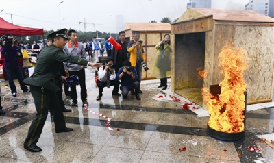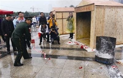 李明涛介绍,在平地上,火武器可以初期灭掉平面面积8~10平方米的区域,至少也能在3~5平方米内发挥功效。
