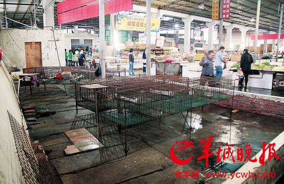 东莞常平镇袁山贝市场禽类档口已被清理得一毛不剩羊城晚报记者王俊伟摄