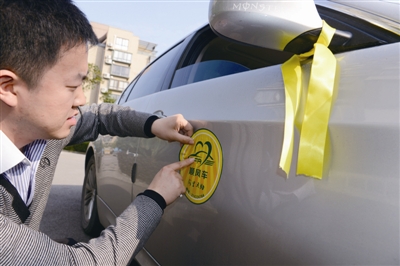 热心车主在贴顺风车标签。