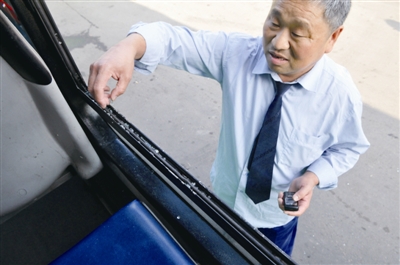 还有一些碎玻璃散落在车窗轨道内。徐晓春摄
