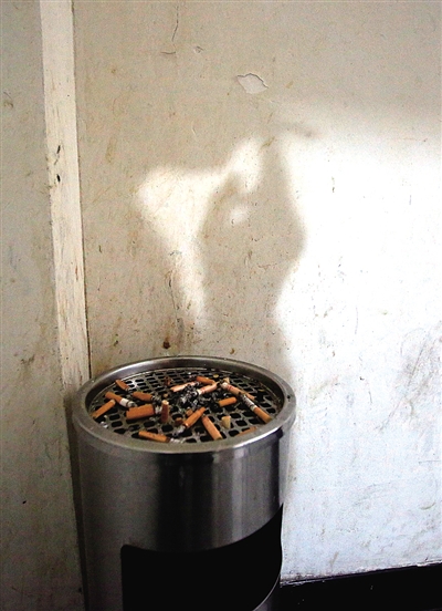 随后,记者又来到温州中心医院住院部,看到病房附近的电梯间俨然已是“约定俗成”的吸烟区。“这里窗户开着,烟味马上就能散去的,不要紧。”一名中年男子漫不经心地夹着烟,边抽边聊。