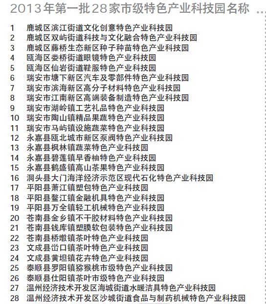 特色产业科技园是指设在功能区和中心镇,东南西北四至范围明确,创新要素相对集聚,特色优势产业相对集中,具有一定规模且发展潜力大,通过培育扶持成为促进区域经济发展的示范基地。特色产业科技园可以是高新技术产业、特色优势传统产业、特色农业、现代服务业等。