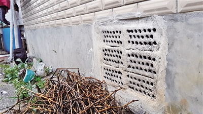 小区里不少房屋的隔空层墙面都设置了通风孔。