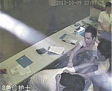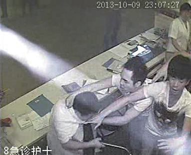 三名男子对医生拳打脚踢