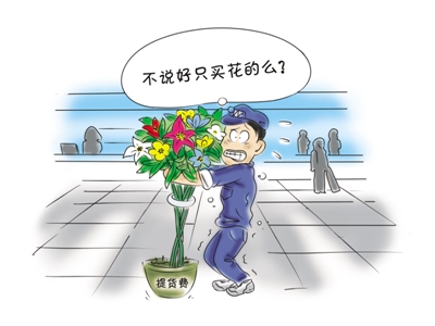 今年11月6日,为准备次日婚庆时所需的鲜花,张先生又向昆明商家订了4件鲜花。第一回感觉自己被“宰”了的张先生,这回长了个心眼,让店员开车去机场运货。可一笔来路不明的“提货费”让店员顿时傻了眼,171公斤左右的鲜花竟然要收取160元“提货费”。店员向货运代理人索要发票或凭证,对方表示无法出具。