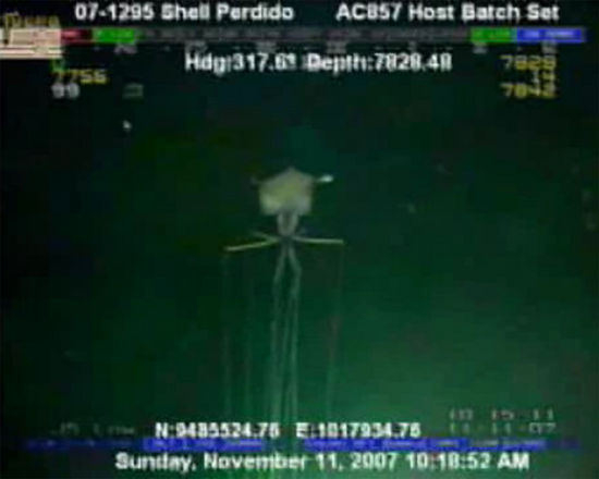 墨西哥湾水下惊现8米长乌贼(网页截图)