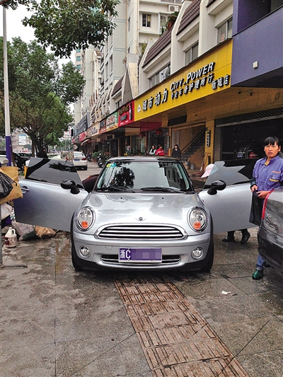 这样的情形在新城“城市动力专业车身护理商行”和“优科豪马轮胎新星汽车服务”门前也能看到。当记者询问前者负责人,为什么要把车子开到人行道上清洁时,他无奈地吐起了苦水: