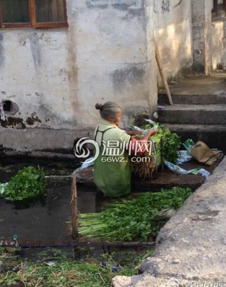 苍南小草根:大妈,你这是在节约用水吗?你不怕自己儿子吃到你亲手洗的芹菜啊?