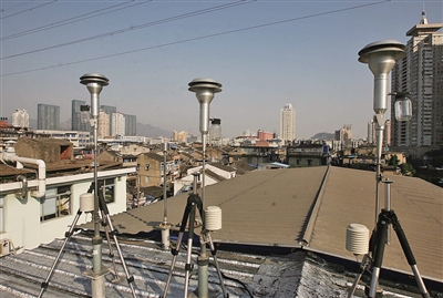 市环境监测中心站楼顶的空气采样头。卿仑摄