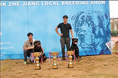 在瑞安举办的犬展上,林琦翰(右一)的狗再次获奖。