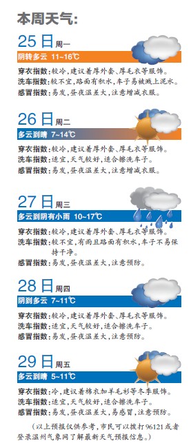 这周两头晴中间小雨 两股冷空气来给温州“清肺”