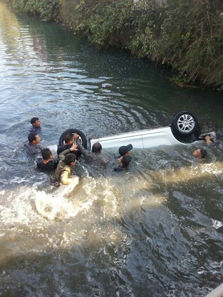 轿车冲入深河 12条汉子跳水后抬车砸窗救起4人
