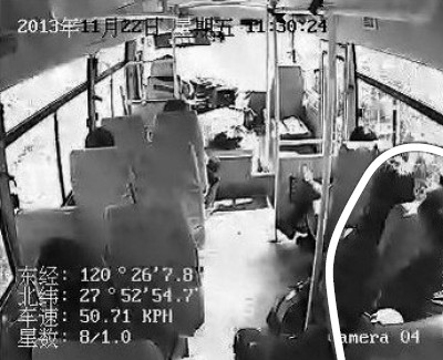 11月22日中午11时20分许,林女士在瑞安湖岭坐上到瓯海瞿溪的中巴车,坐在售票员后面。