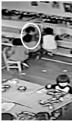 事后,李女士联系了幼儿园的老师,老师说自己不知道多多被咬的事。随后,他们查看了监控才弄清整件事情。监控显示:22日中午11时25分,几个孩子正在餐桌边吃饭,不远处靠墙的柜子边,多多正和两个孩子坐着玩玩具。这时,坐在最外侧的一个穿蓝色上衣的男孩走到多多身边,和她拉扯起来并咬了她的手。多多反抗后,男孩松口往后退了几步。这时,旁边的老师转身走了过来,男孩也就走开了。