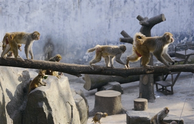 景山动物园诸猴争当猴王 母猴争宠上演“宫心计”