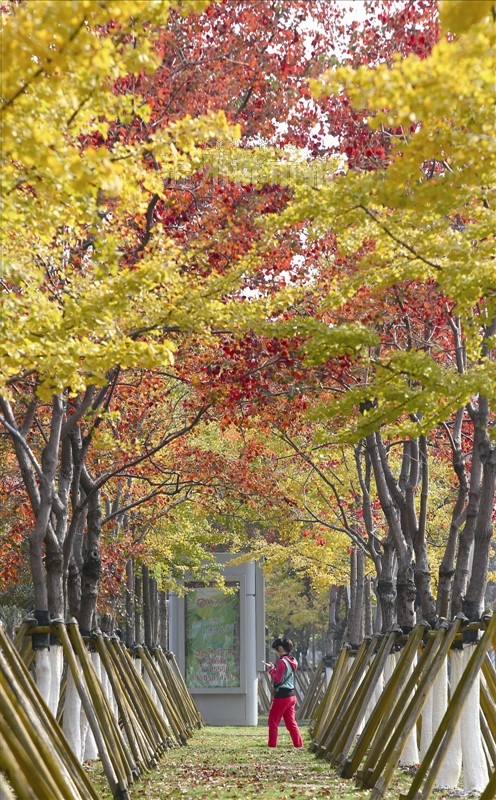 昨天上午,市区瓯江路,路边的银杏和乌桕红黄相间,煞是美丽。记者蒋超/摄