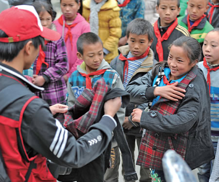 昨天上午,四川凉山彝族自治州布拖县联补乡中心校300来名学生抱着刚送来的新棉衣和棉鞋摸了又摸,看了又看,然后穿上。这些棉衣和棉鞋由温州市艺术摄影学会和浙江省和平慈善基金会的12名爱心人士送去,这次新年新衣温暖活动由温州都市报联合浙江省和平慈善基金会开展。