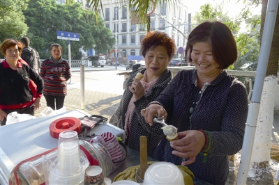 每到夏天,黄阿姨的小摊前总是客源不断,经常是供不应求,但为了保质保量,黄阿姨也只能是让一些“迟到”的客人“失望”了。
