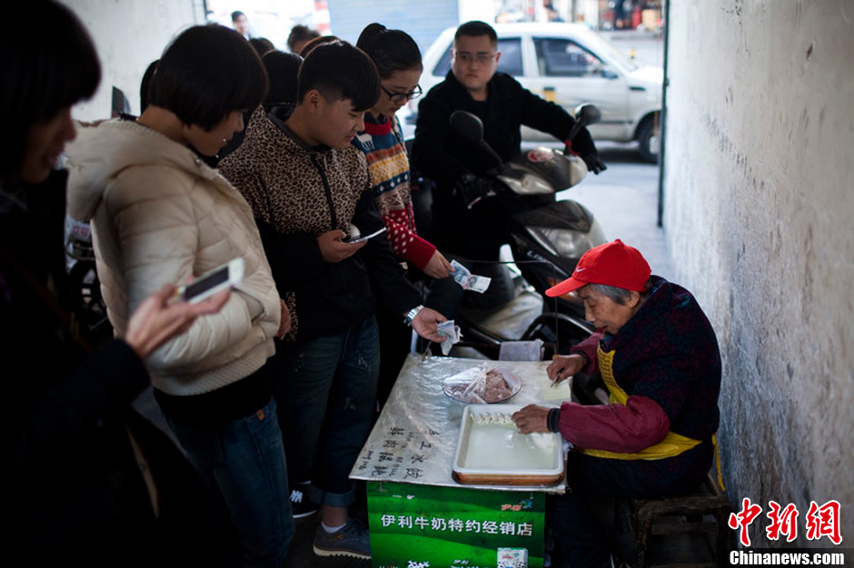 12月2日,长沙韭菜园路,万奶奶的小摊早已被顾客包围。周强摄图片来源:CFP视觉中国