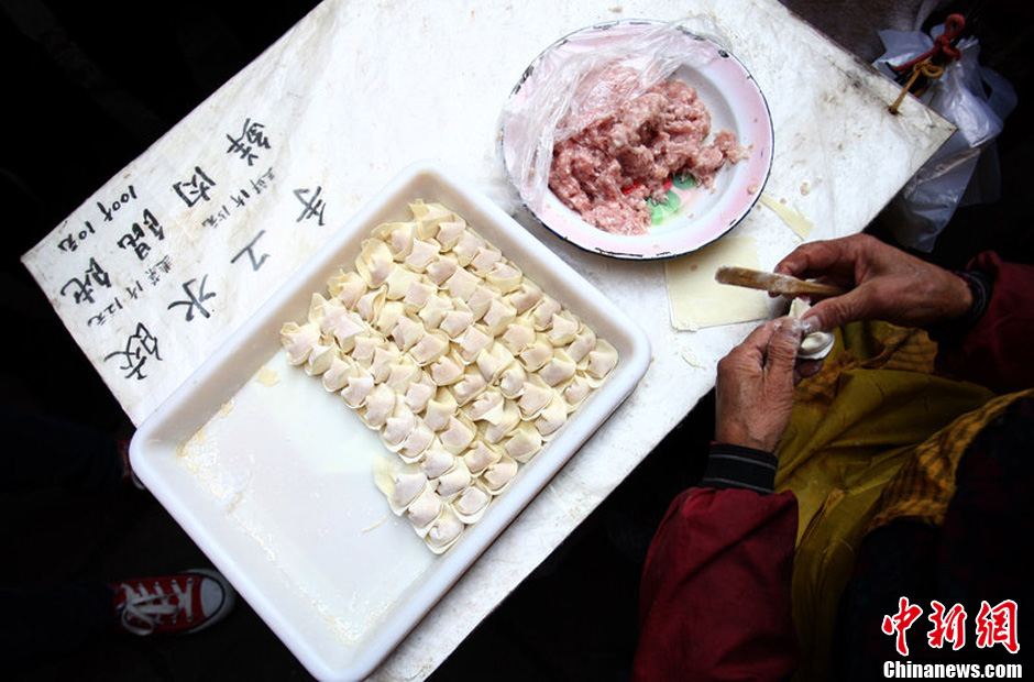 12月2日,长沙韭菜园路,万奶奶正在包馄饨。周强摄图片来源:CFP视觉中国