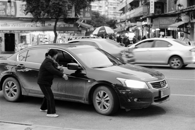 当你东张西望找车位时,一些熟悉或陌生的面孔会“热情”地指挥你过去停车。待车子停下,他们便会上前索要停车费,目前的普遍价位为10元。